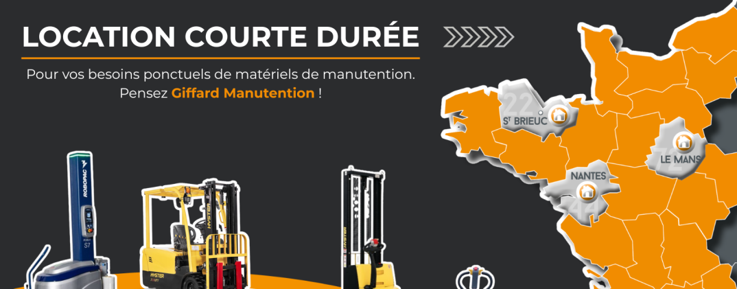 La location courte durée s’adapte à votre activité. Que votre besoin soit ponctuel, lié à un surcroît d’activité ou à une volonté de maîtriser vos coûts, Giffard Manutention vous propose des solutions flexibles, location à la journée, à la semaine, au mois ou pour une durée plus longue.